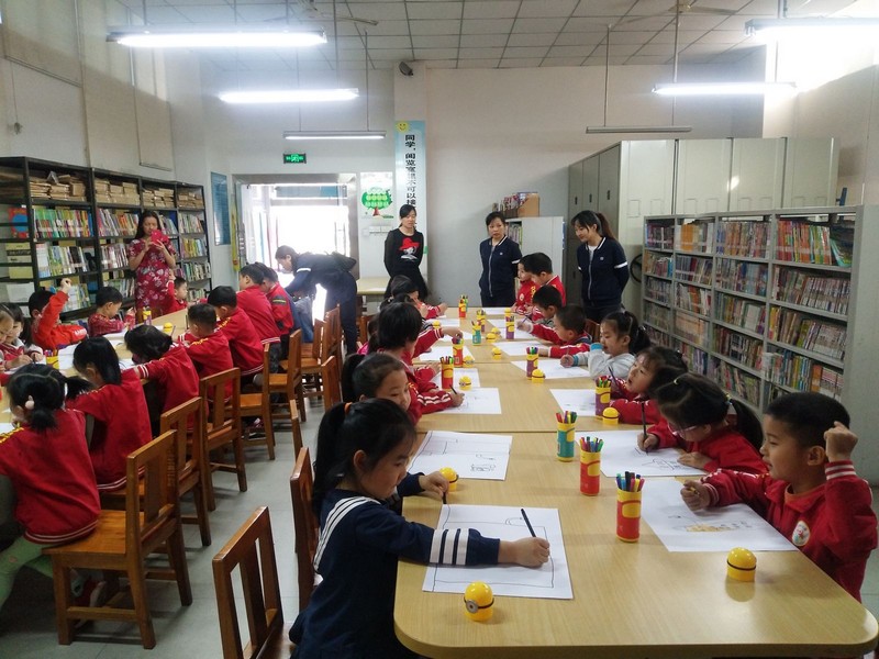 活动最后,老师带领小朋友们开展了简笔画活动,孩子们自由发挥画出了自己心目中的图书馆。活动结束,图书馆工作人员给小朋友们发放了小礼物,鼓励孩子们从小多读书,爱读书。