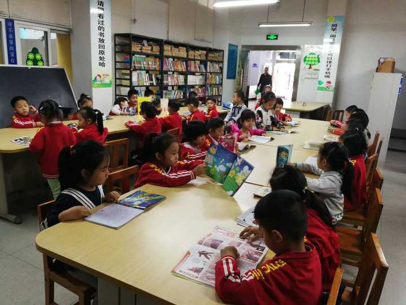 大部分小朋友是第一次来到图书馆,个个都兴奋不已。小朋友们先在一楼多功能报告厅观看了《小猪佩奇》动画片——《图书馆》。观影结束后,图书馆工作人员教会了小朋友一个英语单词——Library,并结合动画片讲解了图书馆的借阅规则及注意事项,接着带领小朋友们参观了期刊部和图书部,小朋友们一路井然有序地跟着老师来到了少儿借阅室,一看到绘本就被吸引住了,各自选了喜爱的绘本就在座位上安静的看起来。